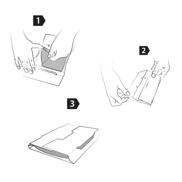 Wyjmij pułapkę z opakowania i folii zabezpieczającej. Rozłóż pułapkę i zdejmij listek zabezpieczający powierzchnię klejąco-wabiącą. Uformuj pułapkę do postaci ze schematu. Umieść pułapkę w miejscu bytowania moli.