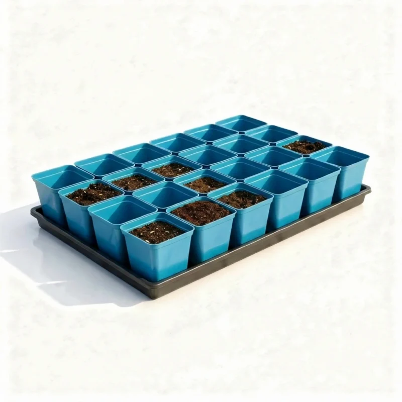 • Gotowy do użycia: Zestaw zawiera 24 niebieskie doniczki P9 oraz dopasowaną tacę 60 x 40 cm.